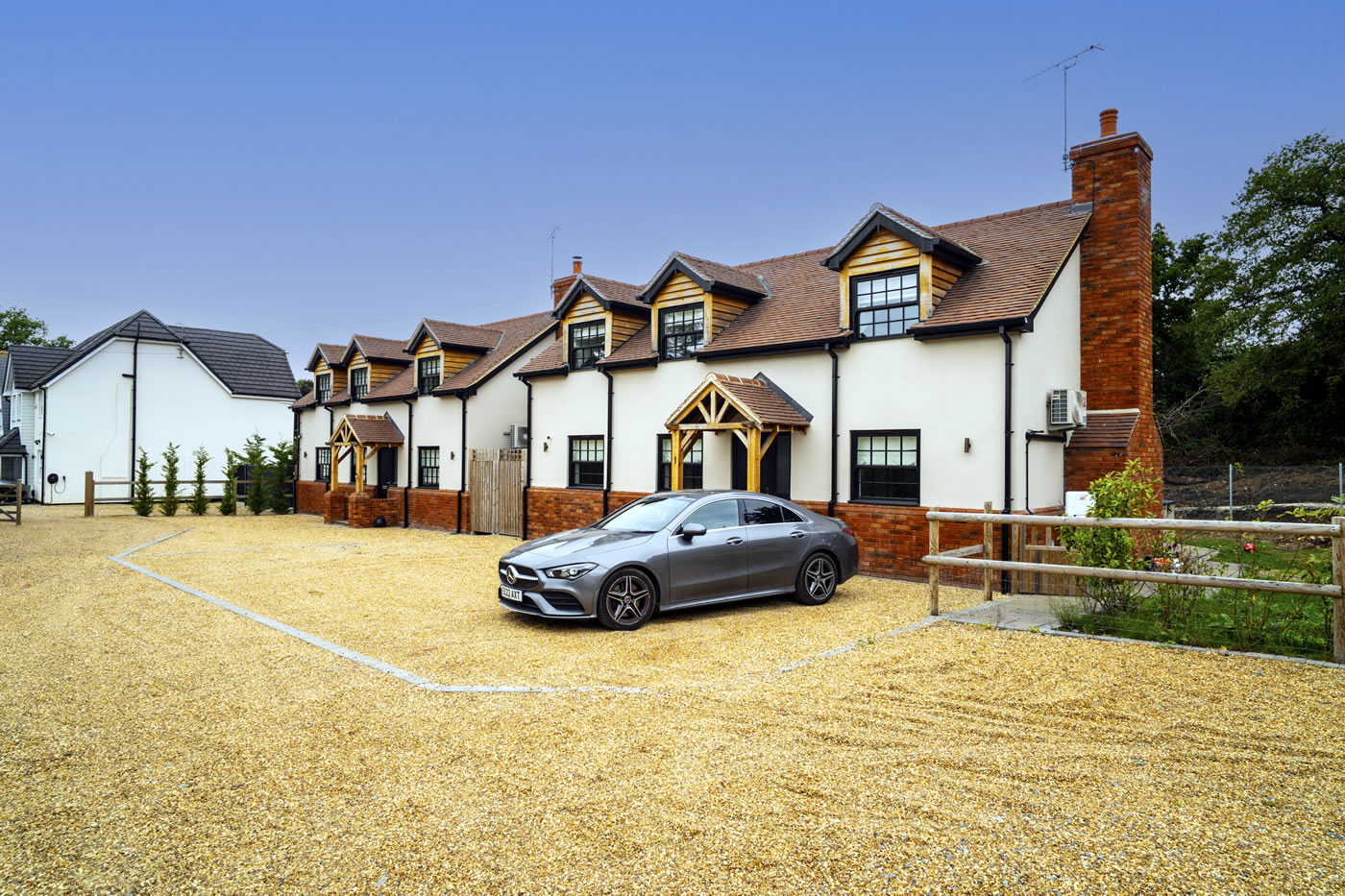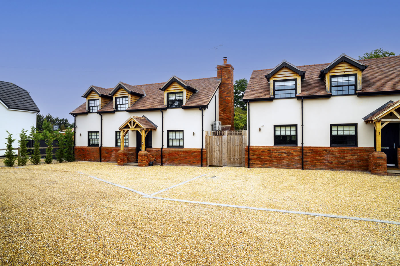 This project began with the purchase of a derelict four-bedroom detached house. Planning permission was secured to replace it with two semi-detached houses, along with three additional detached properties. Planning permission was secured to transform the site into a scheme of five new-build houses, maximising both the potential of the land and the quality of the project. The development delivered modern, well-designed homes that meet the highest standards of quality and appeal.